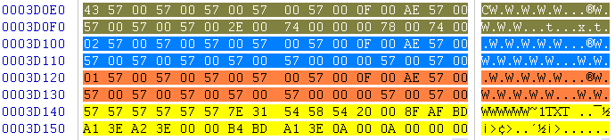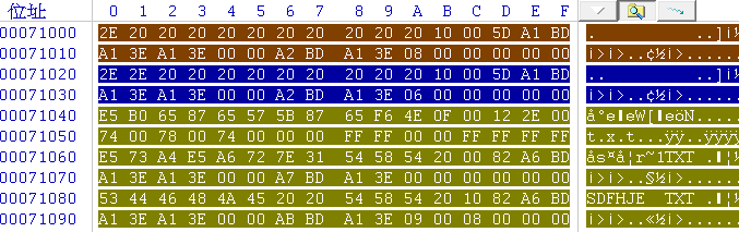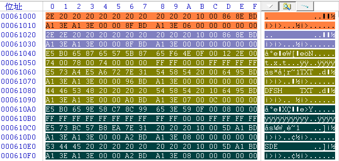 在棕色藍色橘色為長檔名部分(是由高位址往低位址長),黃色為短檔名部分。