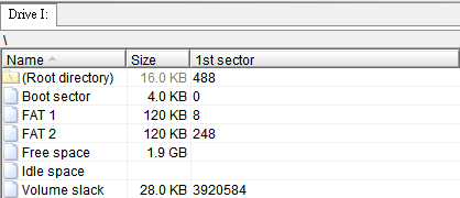 | BPB_FATSz16 | 16-17 | 2 | 每份 FAT 所佔磁區數。但對 FAT32